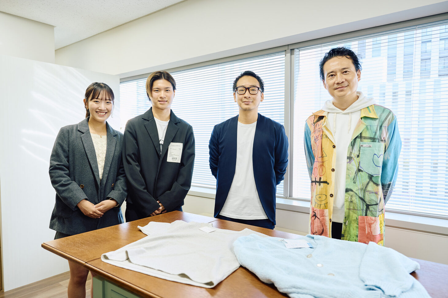 お招きしたのは、1751年創業の繊維専門商社 タキヒヨー株式会社の土屋旅人さん、明治学院大学のファッション系ボランティア団体・MG Closetの勅使河原栞さんと白井俊乃介さん、エシカルディレクターでTOKYOエシカルアドバイザーの坂口真生さん。ファッションとエシカルについての基礎知識や、ファッション産業の現場で今起こっていることなど、さまざまな話題をざっくばらんに話し合いました。
