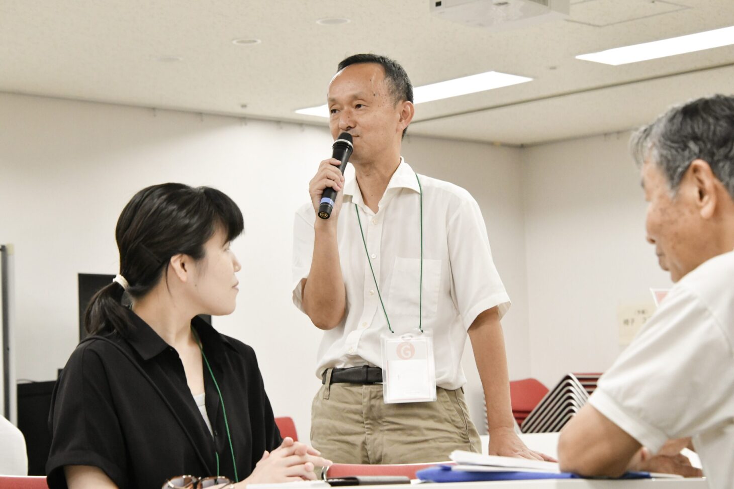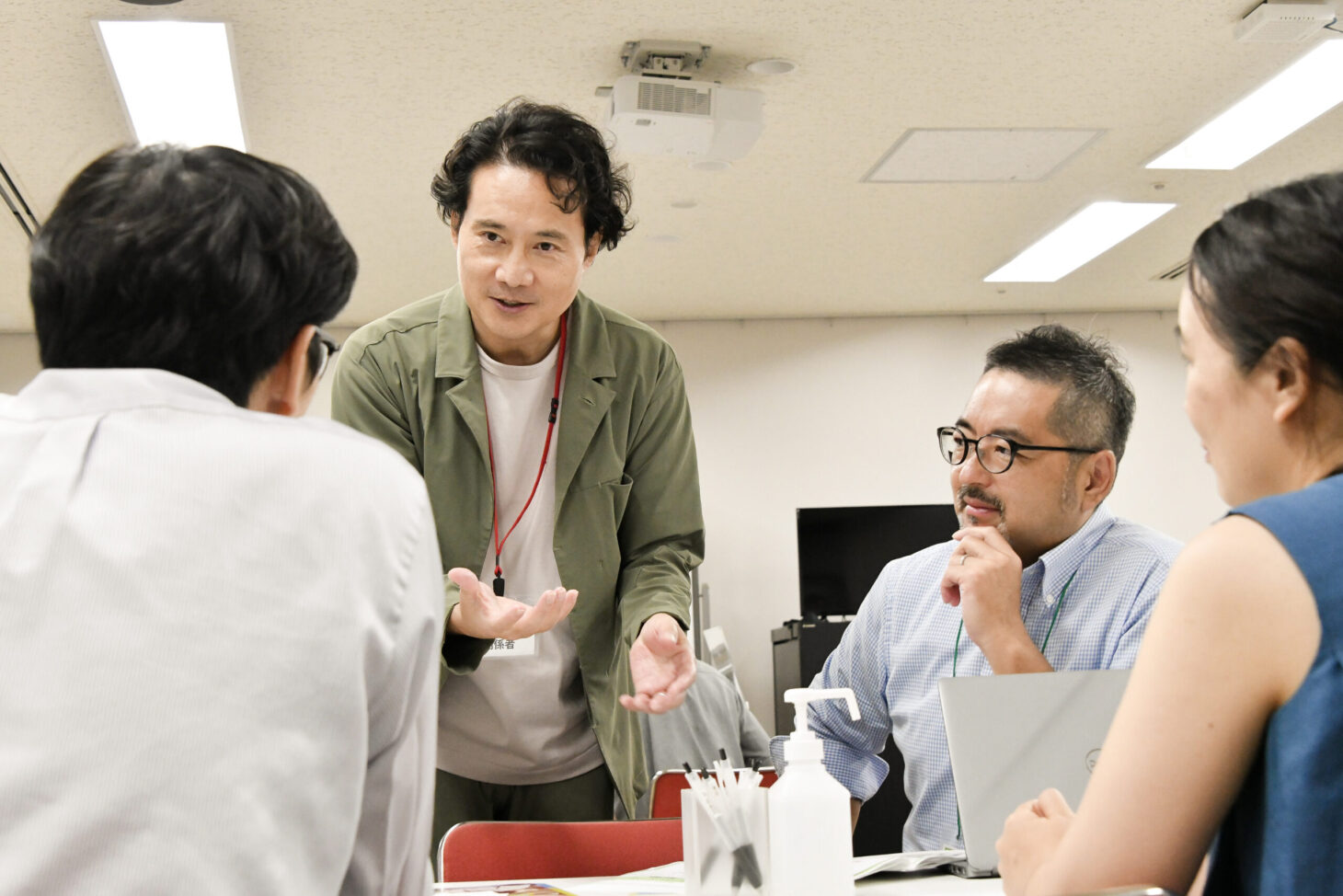 坂口さんがグループを回ってコミュニケーションをしている様子