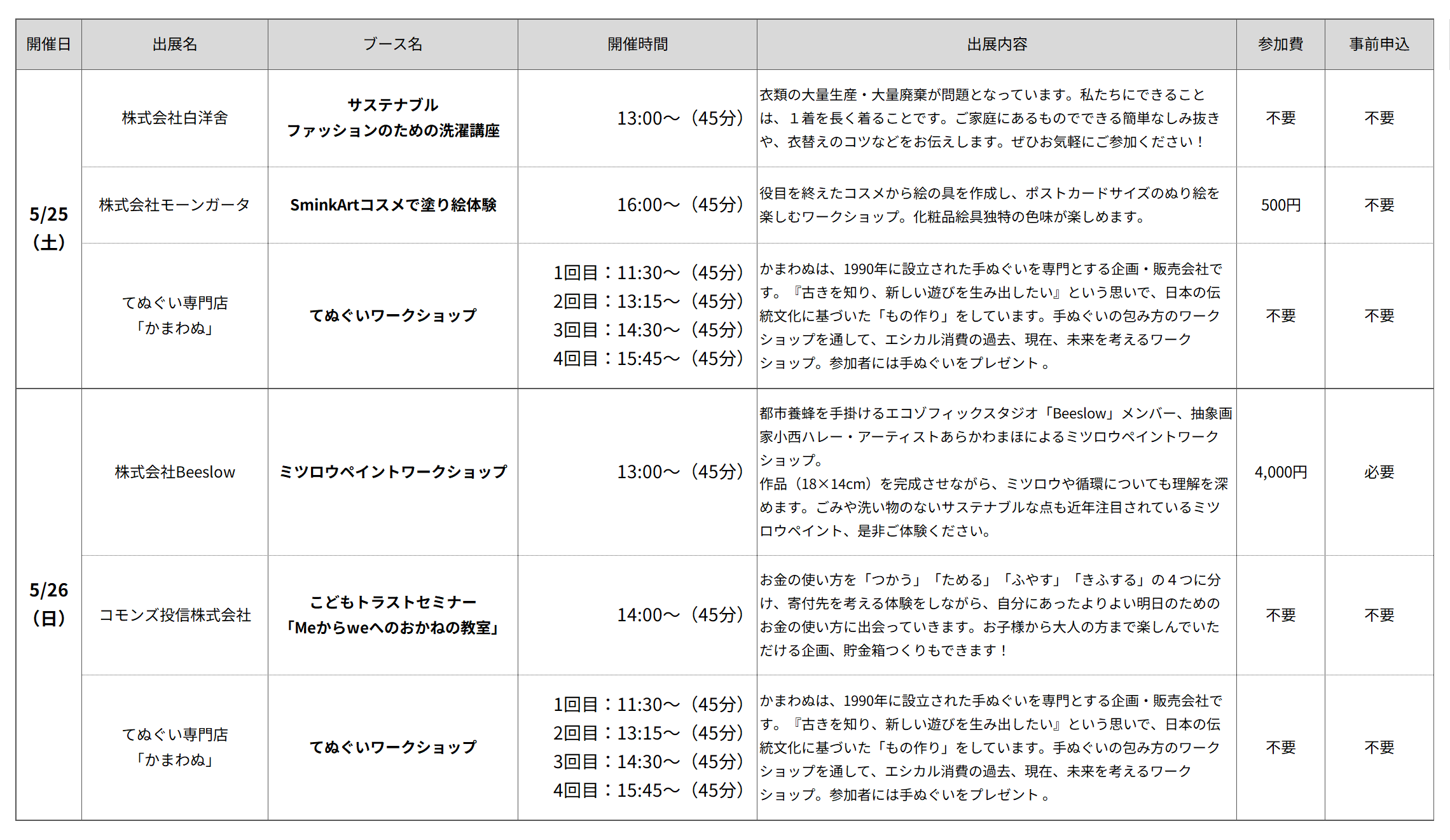 エシカル消費に取組む企業・団体によるトークセッションや、エシカル視点のアップサイクルなファッションショー、テレビ出演でもおなじみのこうちゃんさん考案のエシカルクイズなど魅力的なイベントを実施予定です。