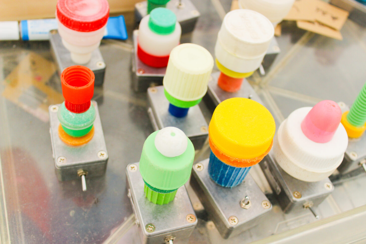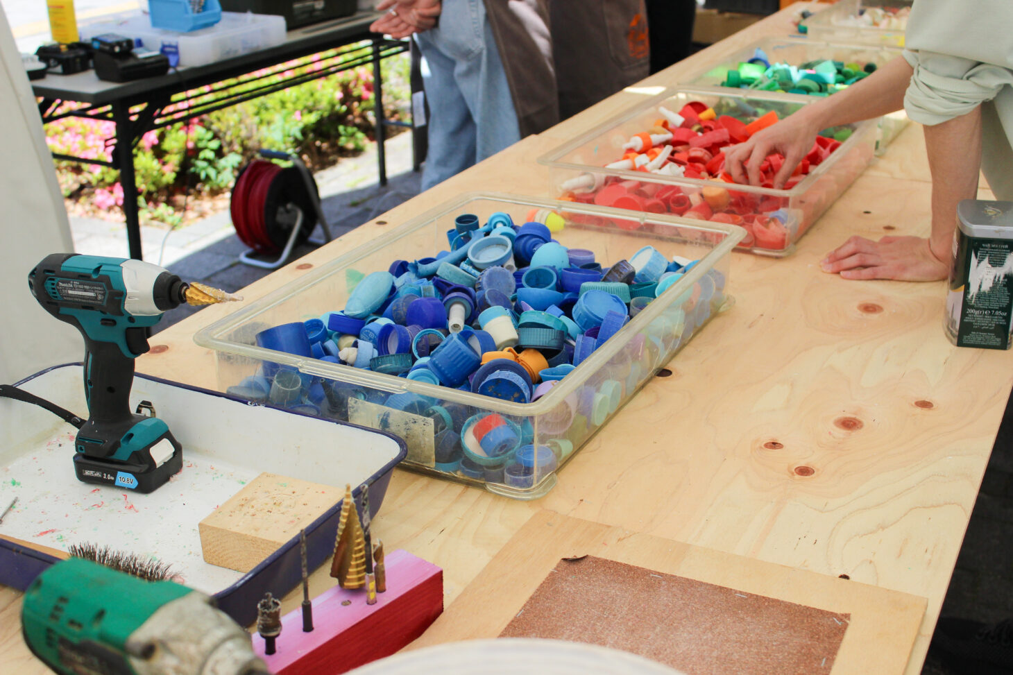 こちらでは捨てられていたキャップや釣り具などの廃棄物を再利用してライトを作るワークショップが行われていました。そのままではただの廃棄物だったものが機能的な家具に生まれ変わりました。アップサイクルが導くサステナブルな未来を想像させてくれます。