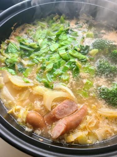 冷蔵庫に残った調味料、つい捨ててしまいがちな野菜の外葉や芯を使ったやさしい味わいの洋風鍋のレシピです。食材を無駄なく活かしながら、心も体も温まる一品です。